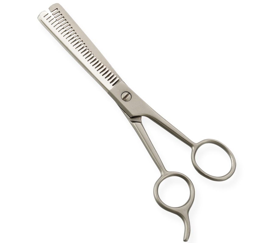 Thinning Scissors. Available Sizes. 4 in, 4.5 in Details. Standard thinning scissors are made of superior quality stainless steel 410, HRC° (hardness) 52° - 55°. Available in fix, limitation, adjustable and hand adjustable screws with and without leaf spring