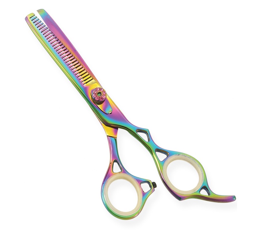 Professional Razor Edge Titanium Coated Thinning Scissor, Movable Screw with Fixed Finger Rest. Available Sizes. 4 in, 4.5 in Details. Razor Edge thinning scissors made of Japanese stainless steel J/2 - 420, HRC° (hardness) 52° - 55°. Also available in 440C HRC° (hardness) 60° - 65°. Available in fix, limitation, adjustable and hand adjustable screws with and without leaf spring.