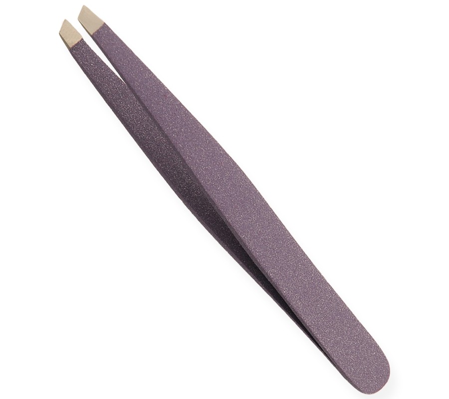 Eyebrow Tweezers Colored, Slanted Available Sizes. 9 cm Details. All tweezers are made of superior quality stainless steel J1/410, HRC° (hardness) 43° - 45°. Beautifully designed top quality stainless steel. This all purpose tweezers is ideal for facial hairs, bikini lines and other unwanted body hair. Available in slanted, straight and pointed tips