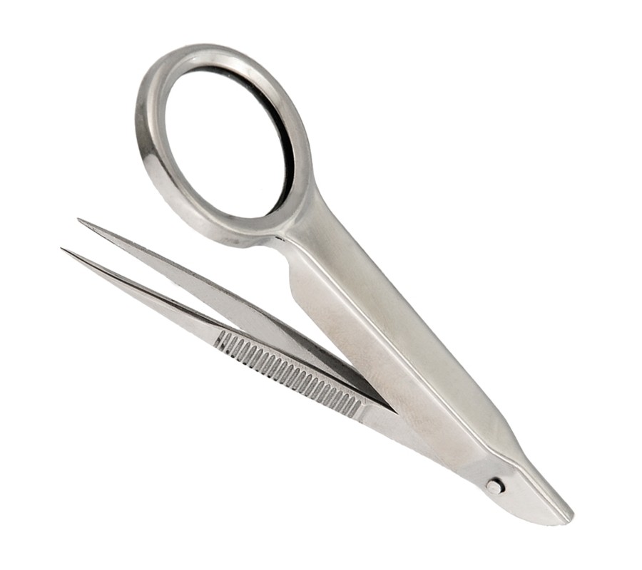 Eyebrow Tweezers with Magnifying Glass, Pointed Available Sizes. 10 cm Details. All tweezers are made of superior quality stainless steel J1/410, HRC° (hardness) 43° - 45°. Beautifully designed top quality stainless steel. This all purpose tweezers is ideal for facial hairs, bikini lines and other unwanted body hair. Available in slanted, straight and pointed tips